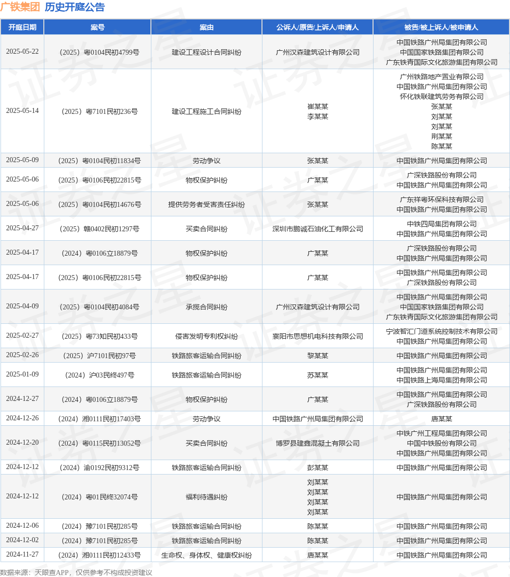 本站消息,根据天眼查APP显示国汇策略国汇策略,近日公布了一则中国铁路广州局集团有限公司作为被告/被上诉人的开庭公告,详细内容如下: