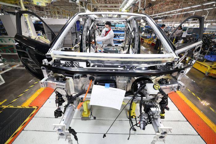 1月8日,在奇瑞新能源汽车股份有限公司石家庄分公司总装车间,工人装配新能源汽车。新华社发(梁子栋 摄)